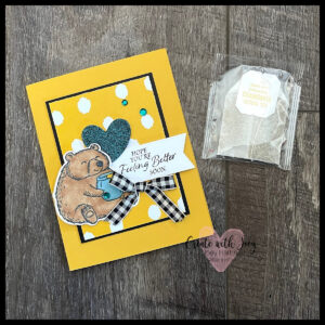 This card is one of the three cards included in my Class To Go kit this week. It's a get well card with a tea bag surprise on the inside! If you'd like to see how I made it, you can find the video on my YouTube channel. I made a simple little pouch inside the card to hold a single tea bag and be a sweet surprise for the card recipient. … [Read more...]